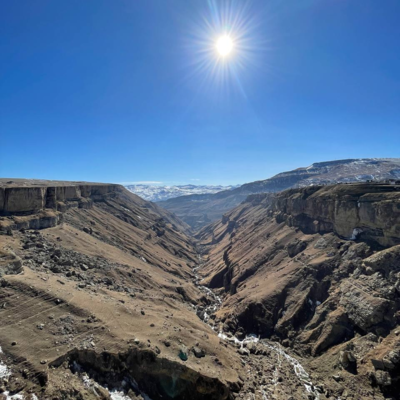 13:45 - Посещение обзорной площадки. Поселок Дубки находится в самой высокой точке Сулакского каньона. Сулакский каньон – самый глубокий каньон в Европе и один из глубочайших каньонов в мире. Располагается в долине реки Сулак. По глубине Сулакский каньон уступает лишь каньонам Котауаси и Колка в Перу и является самым глубоким каньоном в Европе. Сулакский каньон является самой популярной природной достопримечательностью Республики Дагестан. Высота каньона в среднем составляет 1300 метров, но в Дубках она достигает 1920 метров. Вы посетите главную смотровую площадку с панорамным видом. Вас обязательно поразит насыщенный бирюзовый цвет речной воды, напоминающий цвет воды тропических морских курортов. Горные птицы, летающие в каньоне ниже смотровых площадок. И все это на фоне фантастически красивых горных пейзажей.